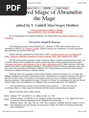82%82% found this document useful, mark this document as useful. The book of the sacred magic [3 eboo. The below books are nearly all pdf files requiring the use of acrobat reader. The book of abramelin tells the story of an egyptian mage named abraham. The book of abramelin is the first modern translation of this magical work since mathers' original.